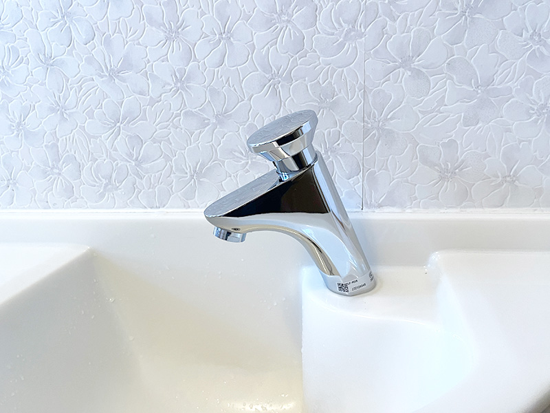 既設がプッシュ式の水栓でしたので同等品での交換をさせていただきました。